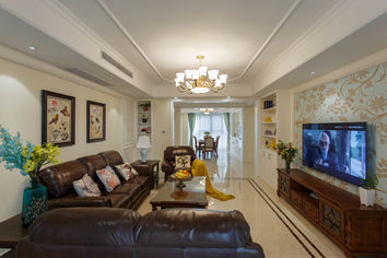 大美至簡,本案以新美式為風(fēng)格基調(diào),從造型上簡化了傳統(tǒng)美式華而不實的裝飾,將美的那部分表達(dá)得極致又恰如其分,喧囂浮華有窮時,靜謐安然無盡處。讓空間的干凈與溫暖氣息在深與淺的碰撞中造就一個詩意的存在。陽光被輕紗掩映,是曉霧迷蒙的詩意畫面。由奧地利象征主義著名畫家古斯塔夫·克里姆特創(chuàng)作的裝飾畫《吻》毋庸置疑成為客廳的焦點,無言訴說家的脈脈溫情。