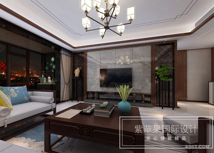 無(wú)錫紫蘋果裝飾新中式裝修效果圖案例賞析: