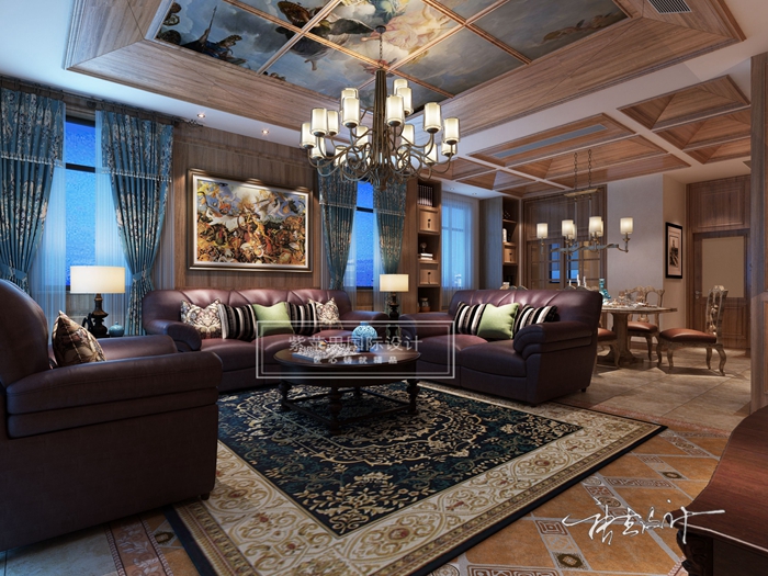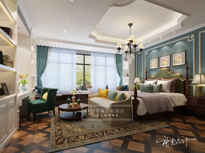 如果說古典美式風(fēng)格線條復(fù)雜、色彩低沉,本案設(shè)計(jì)風(fēng)格則在古典歐式風(fēng)格的基礎(chǔ)上,以簡約的線條代替復(fù)雜的花紋,采用更為明快清新的顏色,既保留了古典歐式的典雅與豪華,又更適應(yīng)現(xiàn)代生活的悠閑與舒適。
