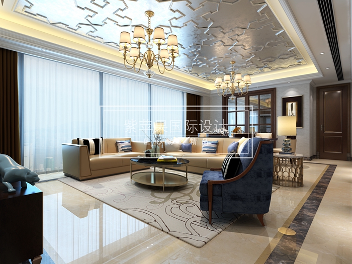 客廳:客廳作為待客區(qū)域,一般要求簡潔明快,同時裝修較其它空間要更明快光鮮,通常使用大量的石材和木飾面裝飾;美國人喜歡有歷史感的東西,這不僅反映在軟裝擺件上對仿古藝術(shù)品的喜愛,同時也反映在裝修上對各種仿古墻地磚、石材的偏愛和對各種仿舊工藝的追求上。