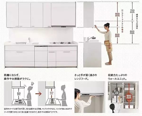 在臺(tái)面的高度設(shè)計(jì)時(shí),要注意不同區(qū)域的高度要有所差別。如洗菜區(qū)臺(tái)面要高一些,切菜、烹飪區(qū)的臺(tái)面要低一些。