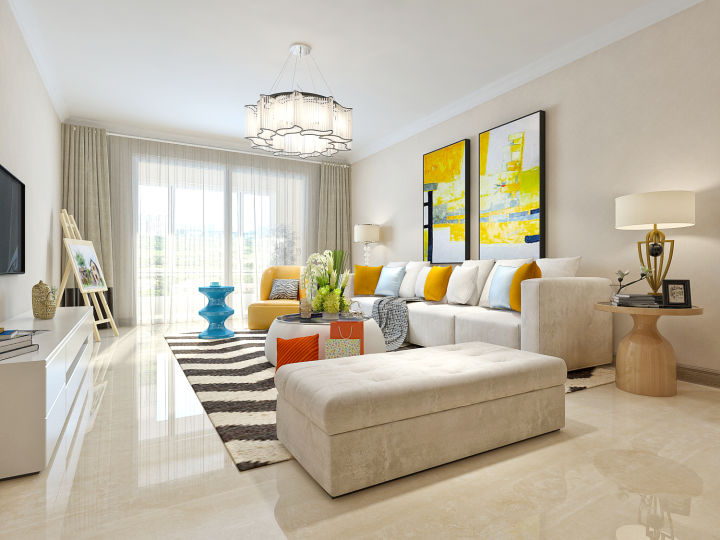 (1)室內(nèi)配色,最好只有一種主色調(diào),然后選一到兩種輔助色對(duì)比色,用來調(diào)節(jié)客廳的顏色純度和明度的變化,但是對(duì)比色的面積和種類要少,否則顯得又亂又廉價(jià)。