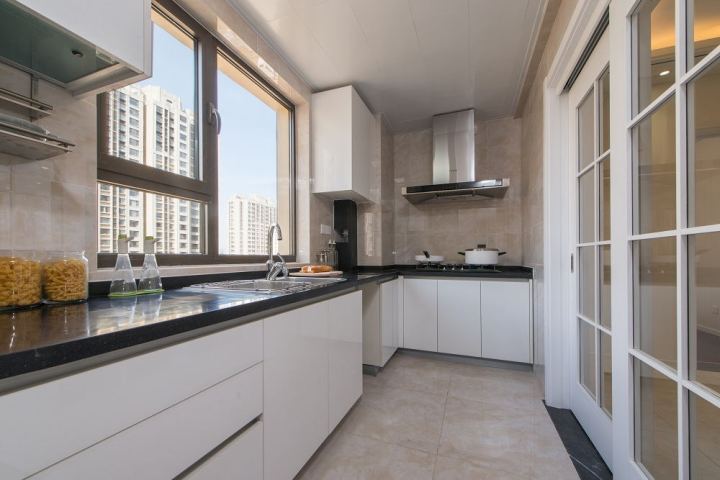 開放式廚房固然美觀,但油煙、收納及整潔性等問題是不得不面對(duì)的,不妨考慮安裝玻璃推拉門,透過玻璃看到家人和自己在一起,做飯也就沒那么無聊了,推拉門相對(duì)于平開門而言還可以減少開關(guān)門占用的空間。