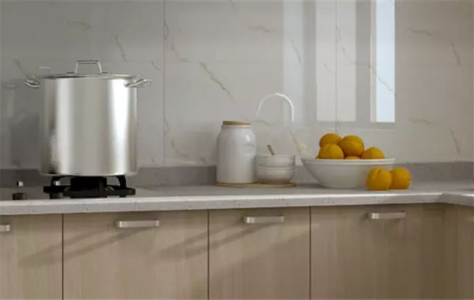 廚房臺(tái)面最好使用石英石臺(tái)面,硬度高、防滲透、耐刮、耐磨并且環(huán)保無輻射,可與食物直接接觸。而人造石臺(tái)面不耐高低溫,硬度低,使用一段時(shí)間后,表面會(huì)有劃痕;大理石臺(tái)面不易做造型,容易吸油滲色,不易清洗。