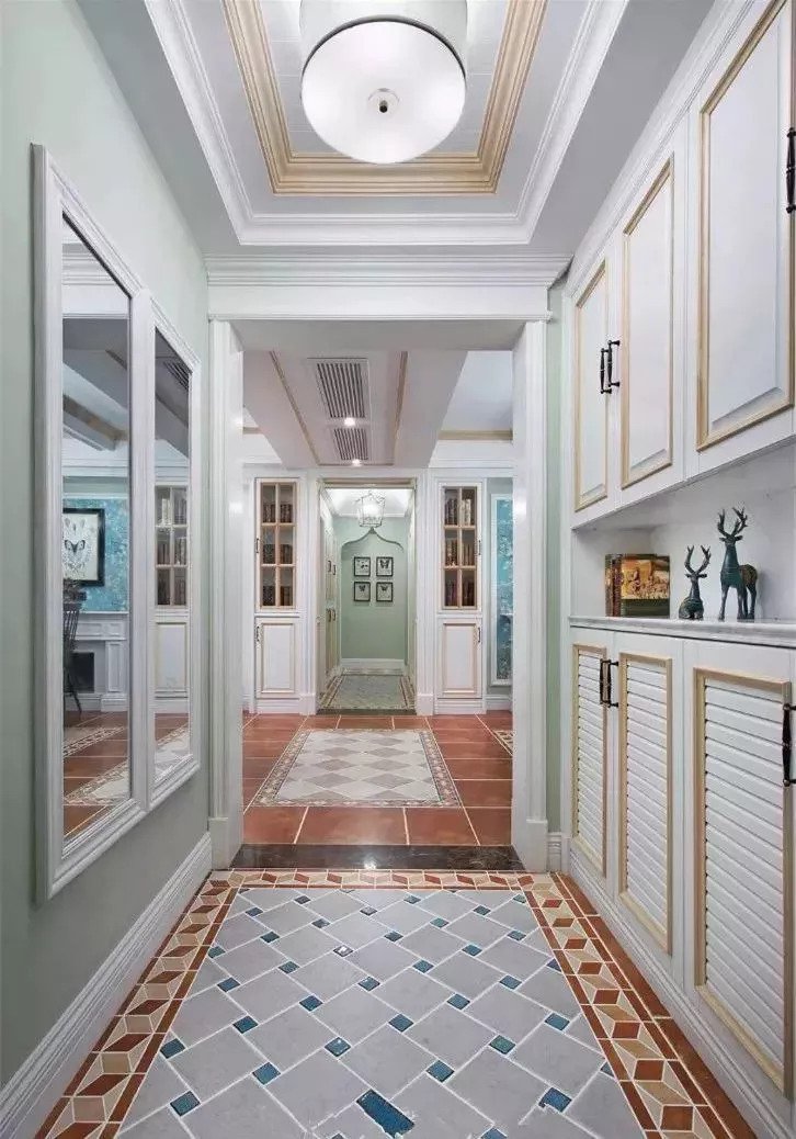 玄關(guān)是進(jìn)門(mén)第一眼映入眼簾的地方,在玄關(guān)打一個(gè)玄關(guān)柜,你家50%的東西都有了存放的地方,而且還因?yàn)檫M(jìn)門(mén)隨手放、出門(mén)隨便拿,讓生活也簡(jiǎn)單方便得多了。小編會(huì)建議大家裝到頂或者是嵌入式的玄關(guān)柜,這樣就不用擔(dān)心柜頂落灰不好打掃了。