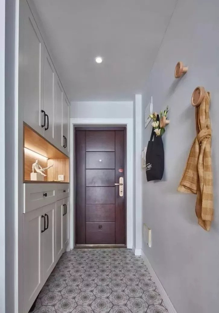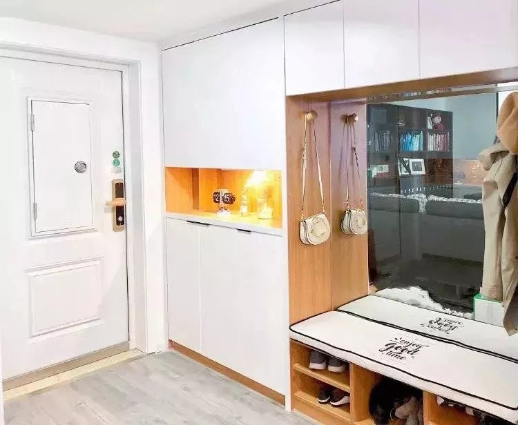 玄關(guān)柜更重視的是實(shí)用,上面空間裝不常穿的鞋子、下層空間裝當(dāng)季鞋子,中間放鑰匙等小物件,目前絕大多數(shù)家庭采用的都是這種組合。