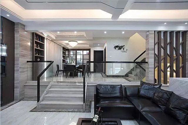 大理石是最近很流行的一種家裝元素,它比較容易保養(yǎng)且耐潮能力好。只是用于樓梯時(shí)需要安裝防滑條,手感冰涼??墒?,贏在顏值高啊。
