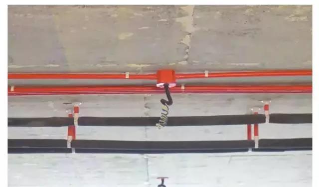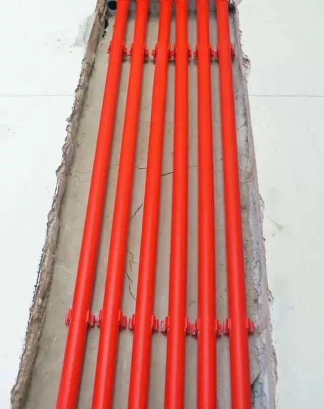 潮濕區(qū)域強(qiáng)電不得走地面,特殊情況在地面布線,線管直接須加PVC專用膠水,并包裹防水電工膠布3-5圈(紅管包藍(lán)色膠布,藍(lán)管包紅色膠布),過(guò)道處地面管線用水泥砂漿“八“字護(hù)坡保護(hù)。