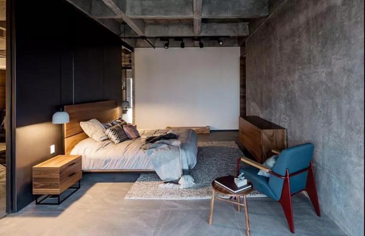 在追求「裸感」設(shè)計(jì)的空間中,設(shè)計(jì)師要十分巧妙地利用材質(zhì)的紋理,去引導(dǎo)人們產(chǎn)生視覺上的審美體驗(yàn),從而實(shí)現(xiàn)豐富空間的效果。