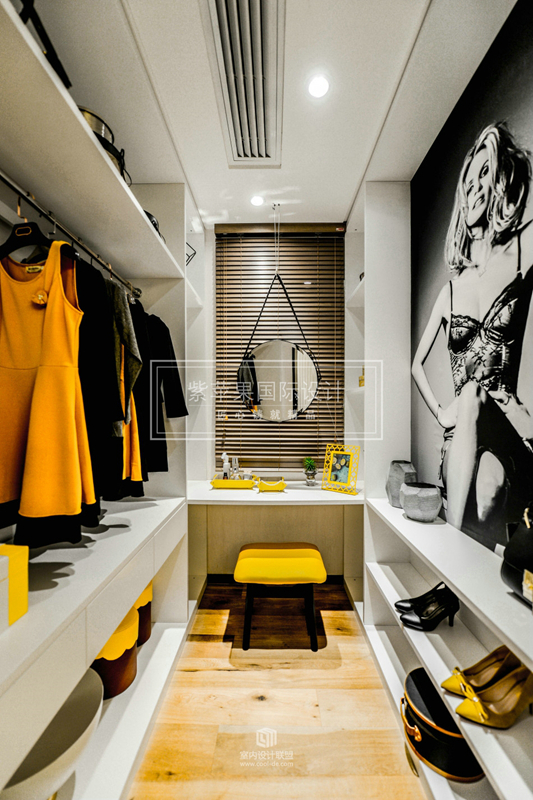 衣帽間放置個梳妝臺可以有效的換衣服和打理自己。