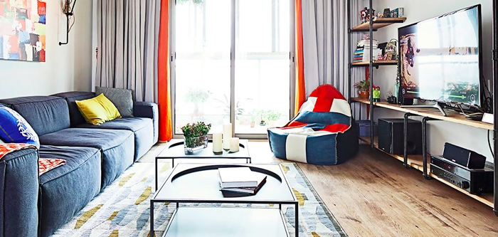 C、造型簡潔的大色塊組合沙發(fā),色澤或鮮艷或素凈