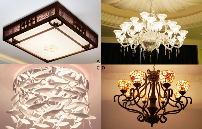 A、圓形或方形的中式韻味仿古造型燈具