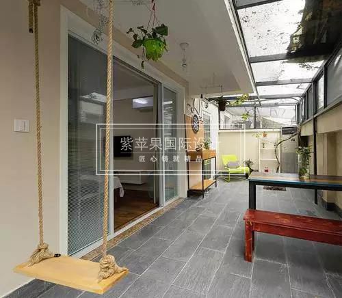 露臺用玻璃封起來,也算是一個(gè)簡單的戶外游樂園了。