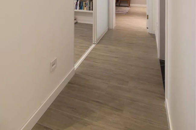 瓷磚踢腳線是根據(jù)不同的地磚風(fēng)格來搭配的,整體效果簡單,而且可以與墻面做平成暗貼式的,空間簡潔性更強(qiáng)。
