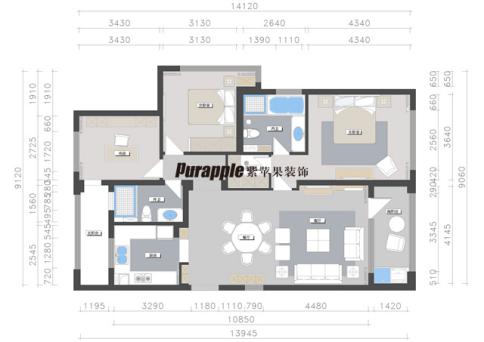 我們的需求:注重比較細致的功能區(qū)域(獨立多功能室、衣帽間、休閑區(qū)等),且在滿足功能的前提下,希望在保留整個空間區(qū)域的情況下做適當?shù)男薷模沟谜w布局更趨合理化;
