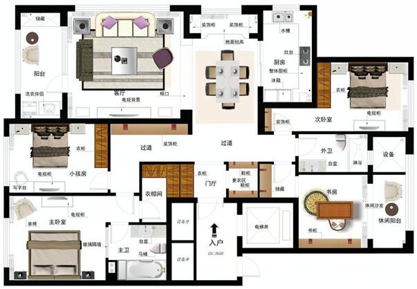 業(yè)主的需求:對功能要求比較全(獨立書房、衣帽間,儲藏室等),且在滿足功能的前提下,首先通過對整體空間的局部改造,是整體布局更趨合理化;淺色調為主,富有家的溫馨。