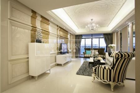 本案為簡歐式風格主要采用白色、淡色為主,以淡色的色調對比跳躍的沙發(fā)靠墊顏色。家具主要特色是強調力度、變化和動感,沙發(fā)華麗的布面與精致的雕刻相互配合,把高貴的造型與地面的舖飾溶為一體。墻面的造型設計,包括餐廳的墻面和臥室的墻面,既要突出凹凸感,又要有優(yōu)美的弧線,兩種造型材質相映成趣,使得空間“風情萬種”!