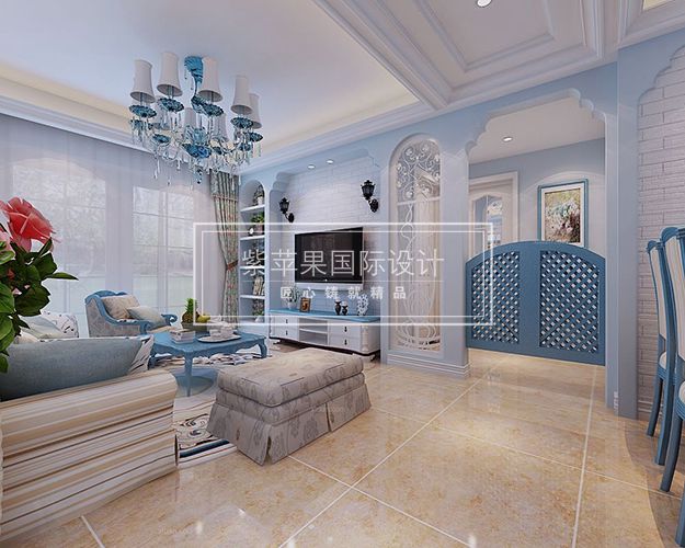 地中海風(fēng)格以其極具親和力的姿態(tài)廣受浪漫主義和藝術(shù)氣質(zhì)的人群喜愛。在軟裝配飾選色上,以直逼自然的柔和色彩為主,利用白灰泥墻、連續(xù)拱廊與拱門、陶磚、 海藍(lán)色屋瓦等軟裝設(shè)計(jì)元素,表現(xiàn)出蔚藍(lán)色的浪漫情懷。