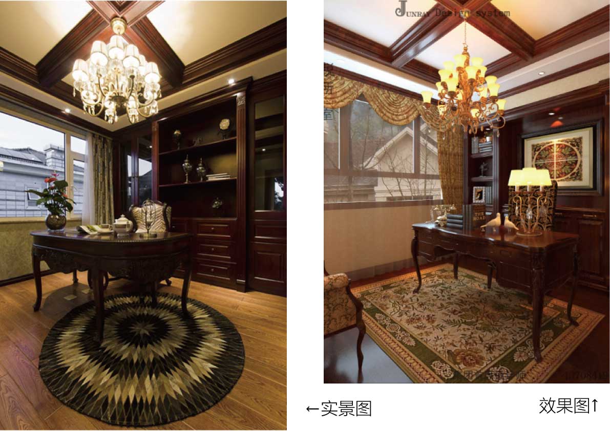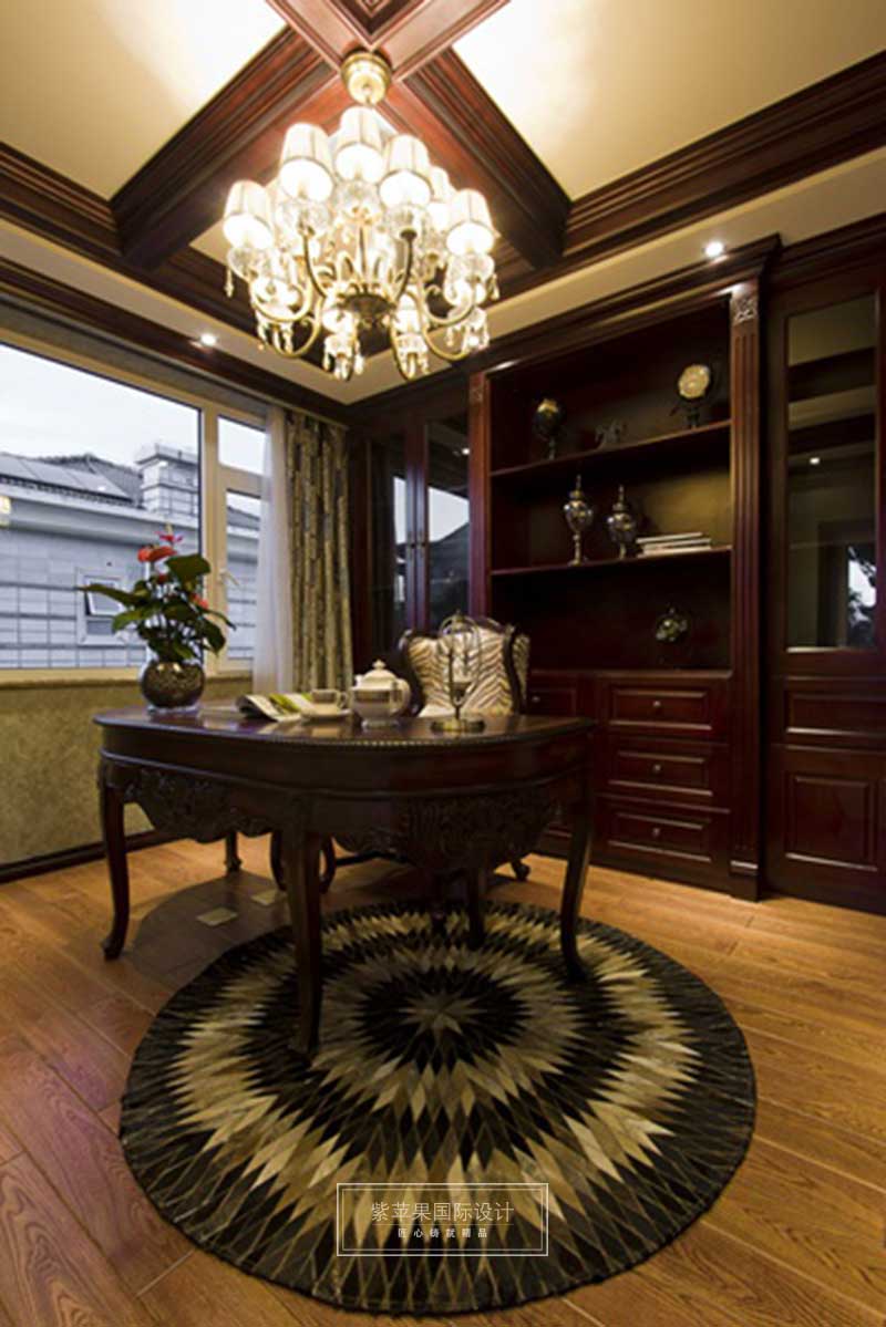 古典氣質(zhì)濃厚的書(shū)房設(shè)計(jì),彰顯大家風(fēng)范。品質(zhì)實(shí)木的桌椅及書(shū)柜,華麗莊重的吊燈,搭配蒙上一層歷史氣息的裝飾物,加上一塊時(shí)尚地毯,將書(shū)房空間的品質(zhì)大氣凸顯得淋漓盡致。