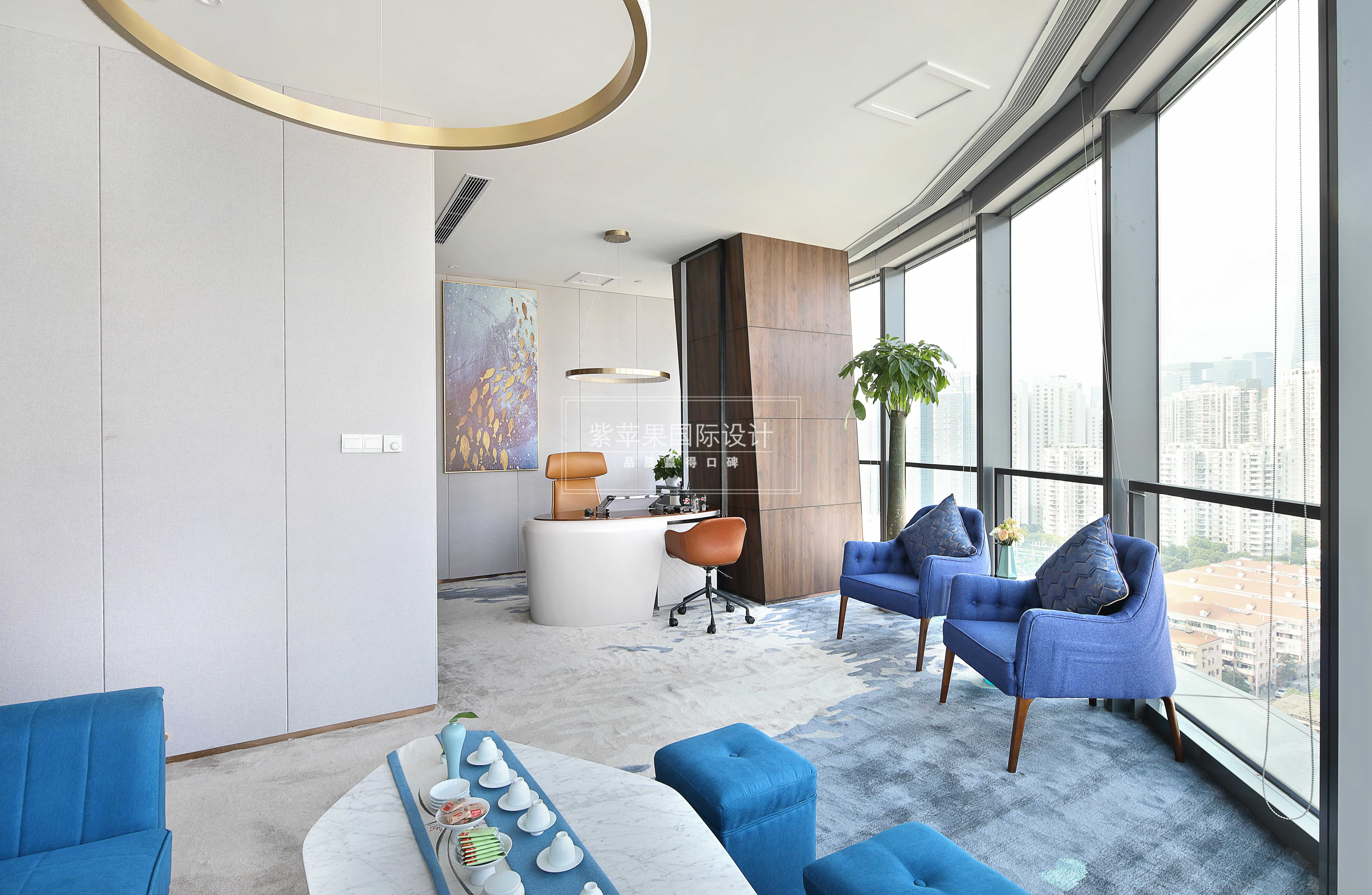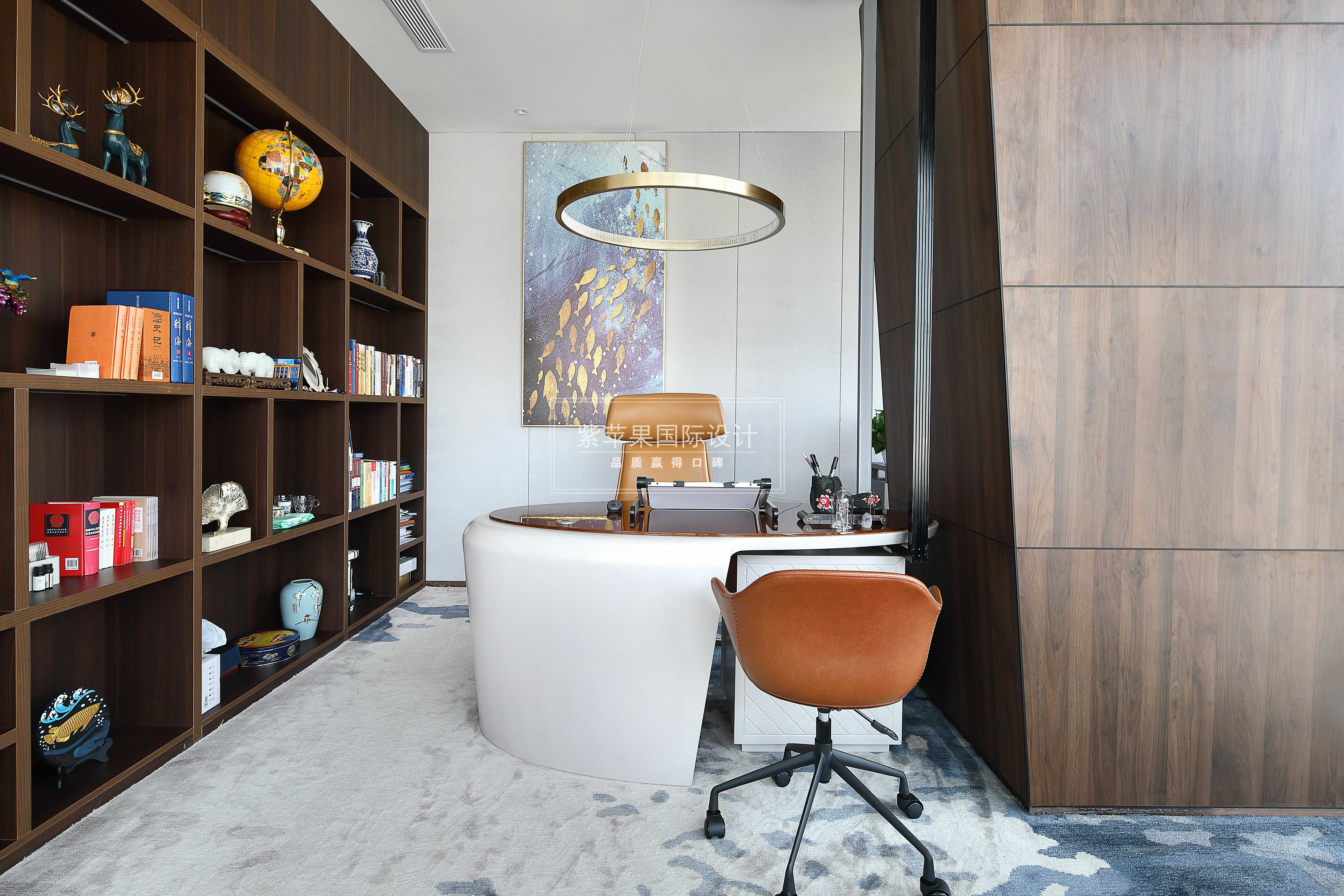 董事長辦公室呈半環(huán)形,空間理念延續(xù)整體場所的設(shè)計(jì),金屬材質(zhì)注入了現(xiàn)代元素,木質(zhì)為空間帶來了沉穩(wěn)內(nèi)斂的感受。