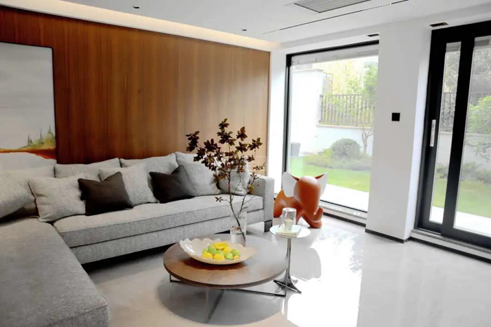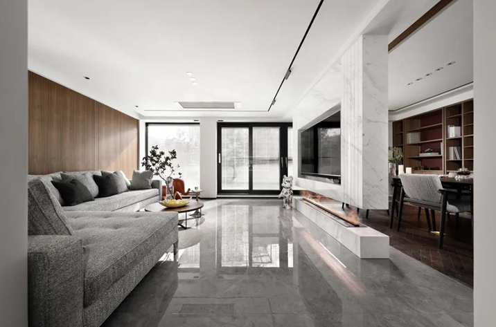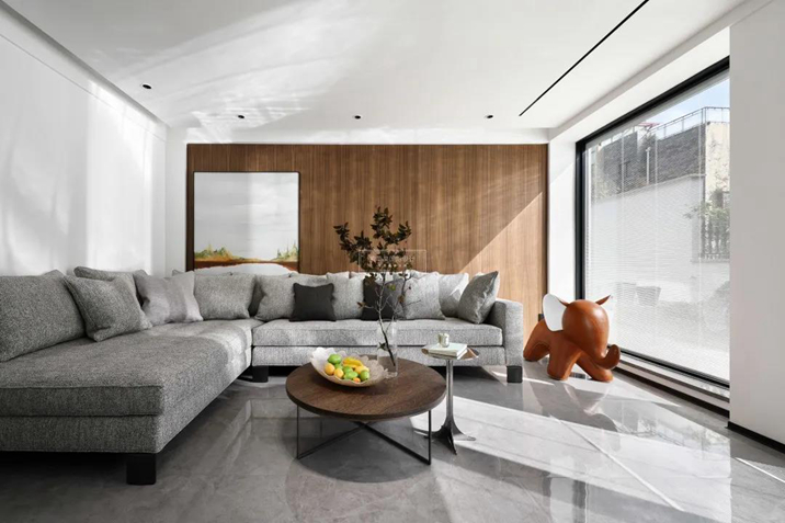 本案從外立面開始,設(shè)計師就做了很多的規(guī)劃,盡量統(tǒng)一整體外觀,保持簡約大氣,結(jié)合實際功能配合觀光電梯入戶,把利落線條運用到極致。