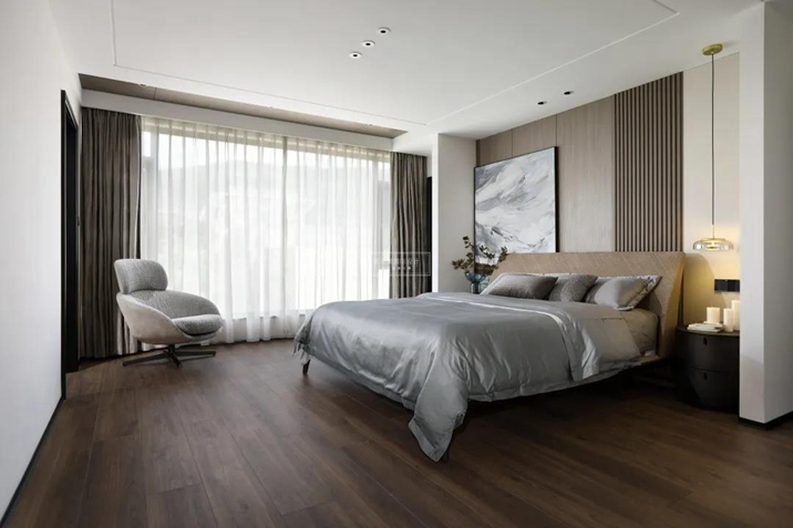 主臥室摩卡棕色系糅合棱角平衡冷暖色調(diào),保留理性思考,營造安靜溫柔,享受獨處私密空間。