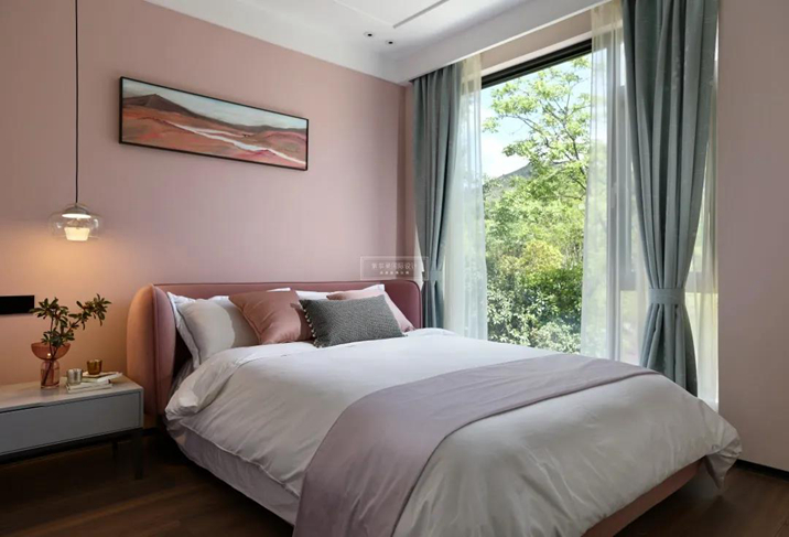 皮粉色的高級感給空間賦予精致的氣質(zhì),窗外自然景趣借景入戶,視享美感更能滿足心中升起的愉悅滿足。